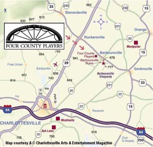 Four County Players is located in Barboursville Virginia just off Highway 33 on Route 678 in Barboursville, Virginia (approximately 20 miles from Charlottesville)